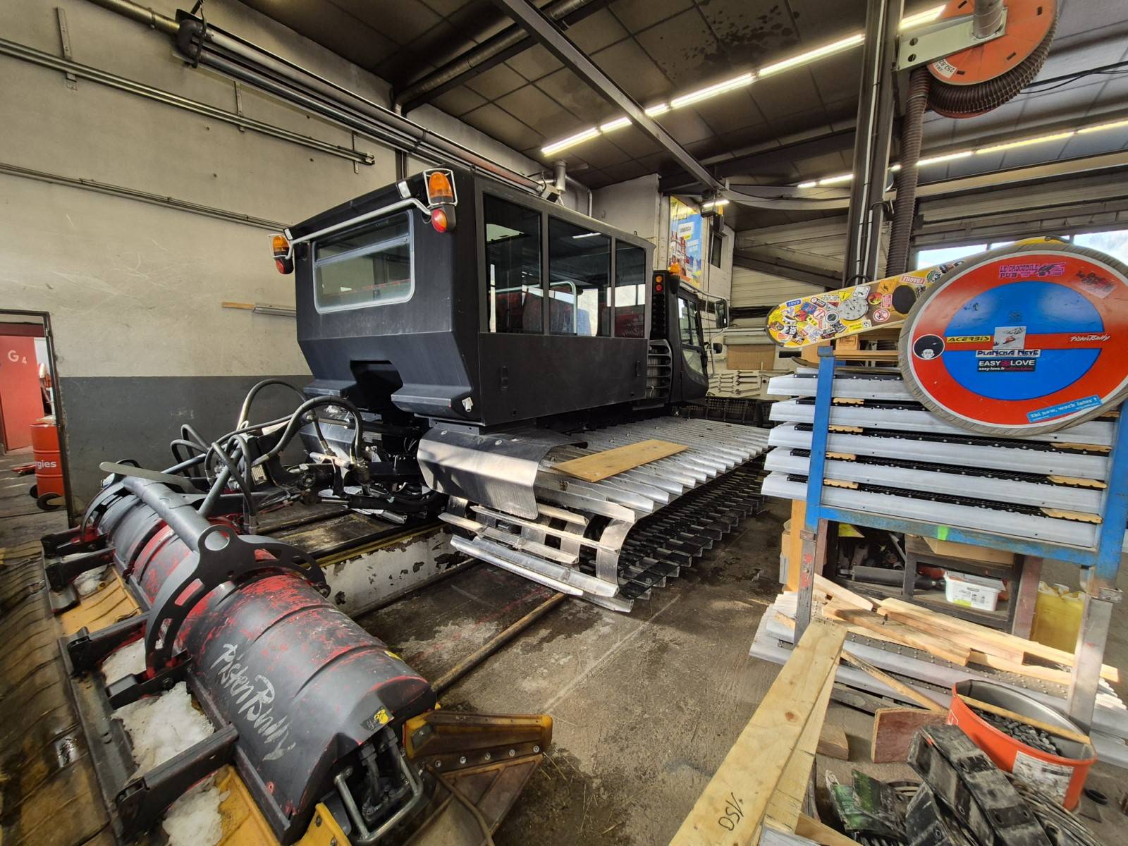 Notre poseur, s est déplacé et a mis une demi journée pour réaliser le marquage des 2 côtés de la dameuse en semi covering.